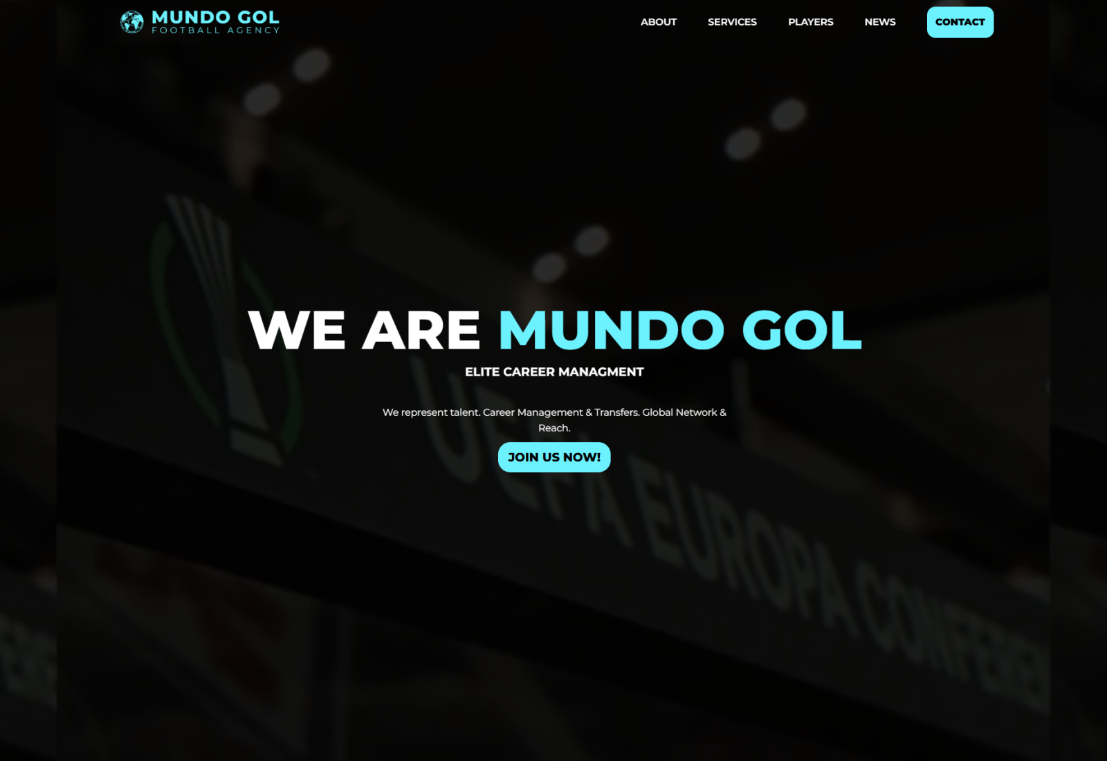 Developed the rebranding and new website for Mundo Gol, creating a cohesive and modern identity that reflects the agency’s global football talent management services. The project included a refreshed visual system, refined digital presence, and intuitive website design to effectively communicate Mundo Gol’s mission and professional expertise.